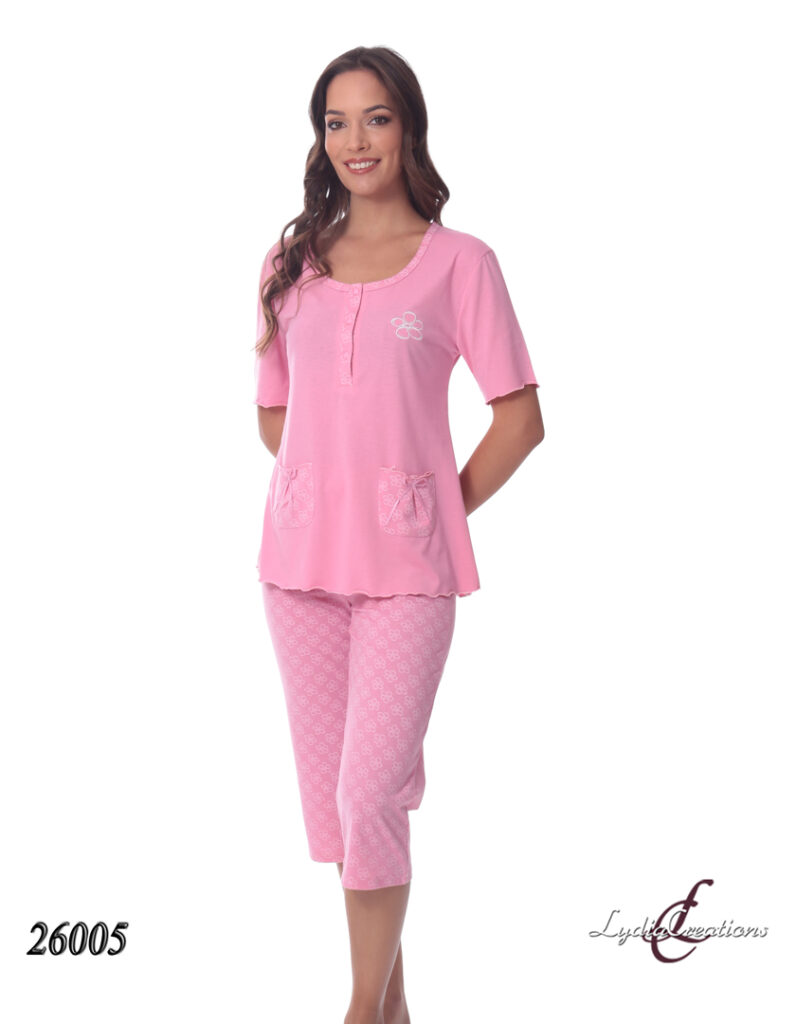 26005 – Pyjama for Women Pyjama for Women with Short Sleeve and Midi Panty Light Pink, Light Blue M-XXL midi panty, PYJAMA FOR WOMEN, SHORT SLEEVES, summer collection