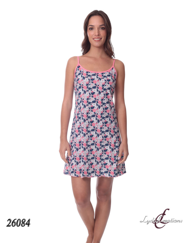 26084 – Gown with Stripes100%Cotton Gown with Stripes 100% Cotton Coral Pink S-XL 100% COTTON, Gown for women, summer collection